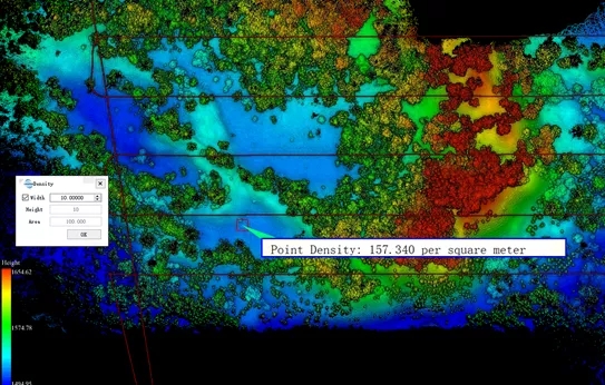 150米航高采集,每平方高达157个点,地物信息详细丰富