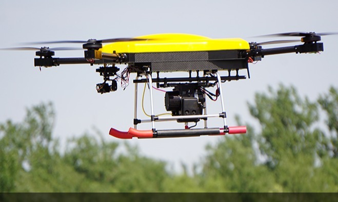 HC-342六旋翼无人机是蜂巢航宇科技(北京)有限公司研制的脉冲察打一体无人机,应对高层建筑火灾,森林火灾,石油化工类火灾这世界三大消防难题,全身采用碳钎维复合材料,可靠性高。