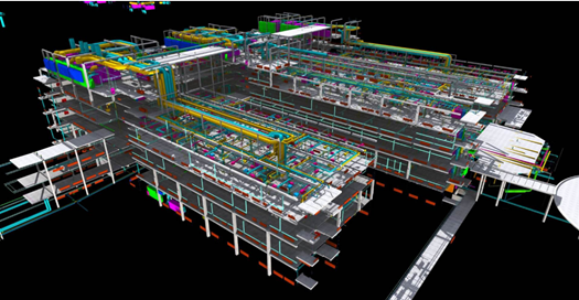 BIM技术可视性、仿真性、优化性、协同性等特点,基于高精度激光点云数据精确搭建对象外部及内部BIM模型,可为建筑工程改造设计和施工信息管理提供依据。