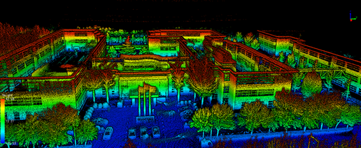 通过三维激光扫描仪获取物体表面的点云数据,点云数据中包含了采集对象表面的三维坐标信息,同时通过相机可采集对象的纹理、颜色信息,为构建高精度BIM模型提供数据基础。
