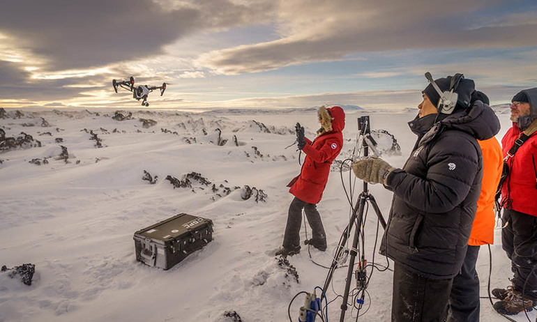 这次任务并非单纯的视觉奇观展示,而是一次对当时消费级无人机极限性能的压力测试。参与行动的包括 ABC 电视台《早安美国》栏目组首席气象学家 Ginger Zee、冰岛地球物理专家组,以及大疆的 Eric Cheng 和 Ferdinand Wolf。在人类被禁止进入的危险区域,Inspire 1 成为了唯一的数据获取工具。